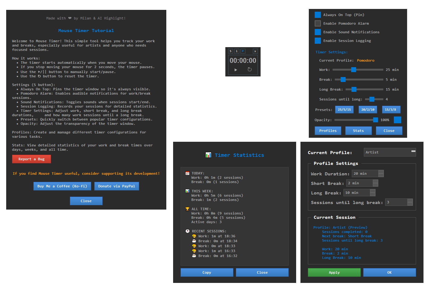Mouse Timer is completely free! If you find it useful and want to support its ongoing development (and help me build more tools like this), you can https://ko-fi.com/cickovic91. Thank you for your support!